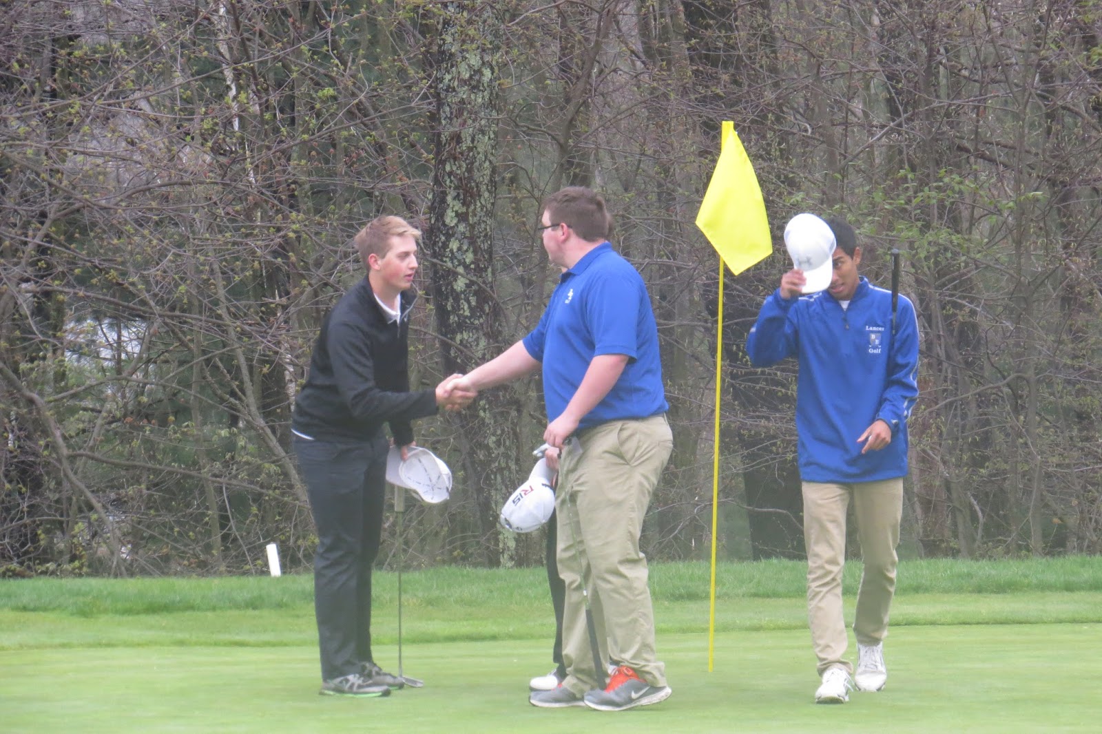 | Golfers from Bristol Central and Bristol Eastern shake hands following their rounds on Monday. |