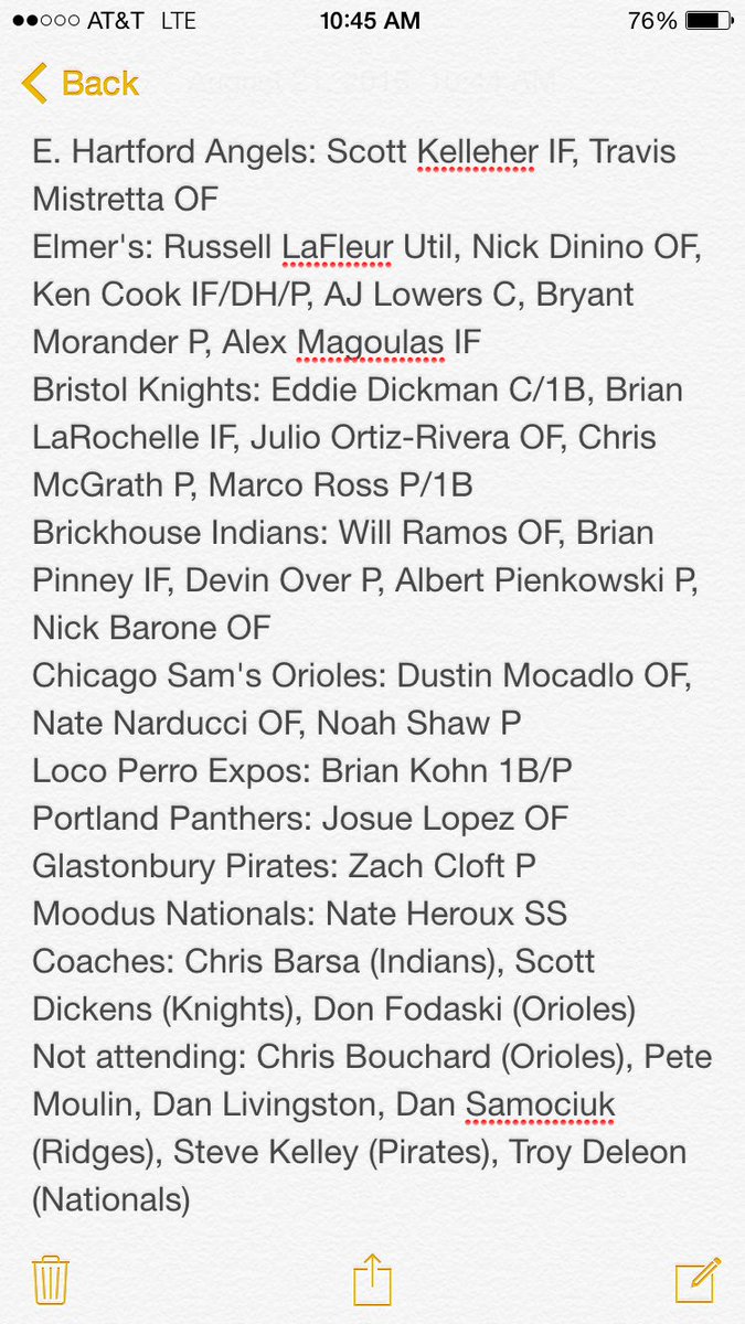 | Connecticut Twilight League all-star roster, courtesy of CTL Twitter account. |