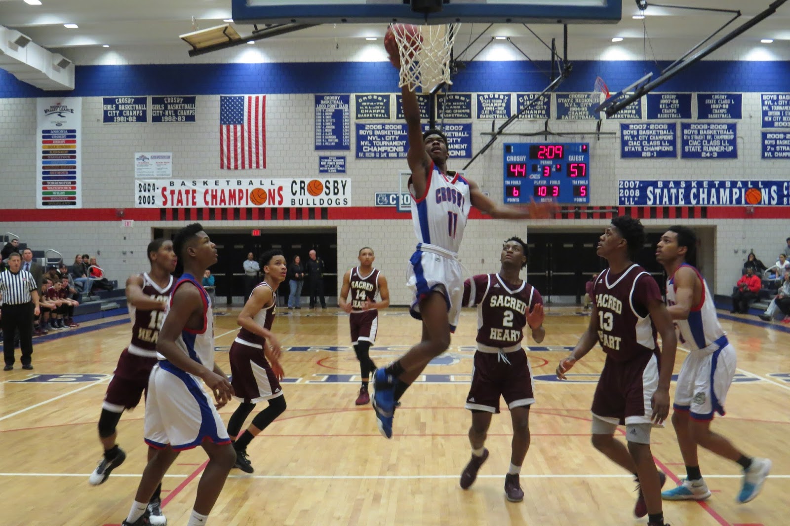 The long-time Bulldog leader mixed up his starting lineup again for the game against the undefeated Sacred Heart Hearts. Crosby jumped out to a 7-0 lead in the first 2:04 of the game, forcing a Sacred Heart timeout.