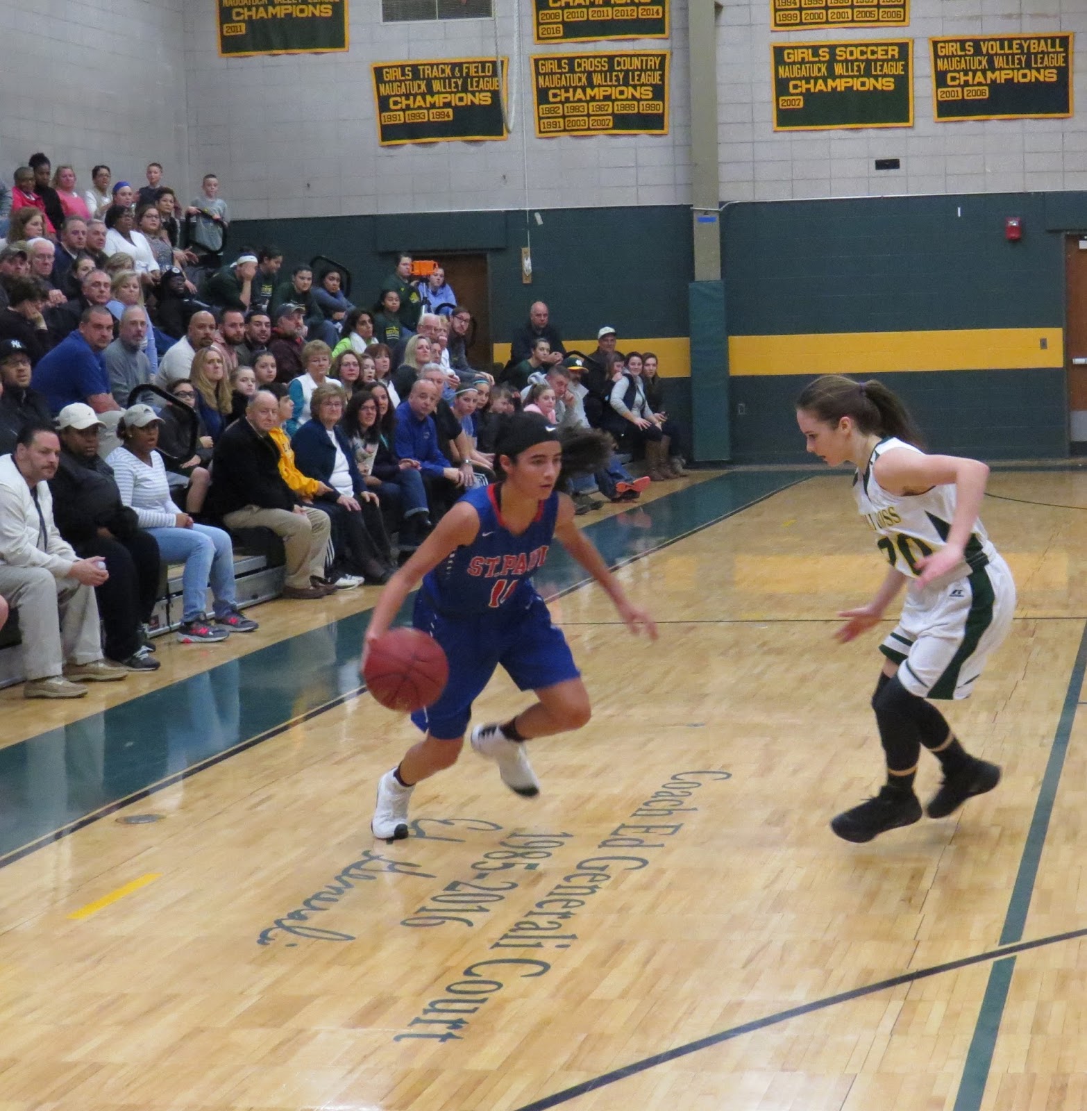 At the end of the first quarter of Friday night’s game inside The Pit, St. Paul girls basketball led the hosts from Holy Cross 21-12.