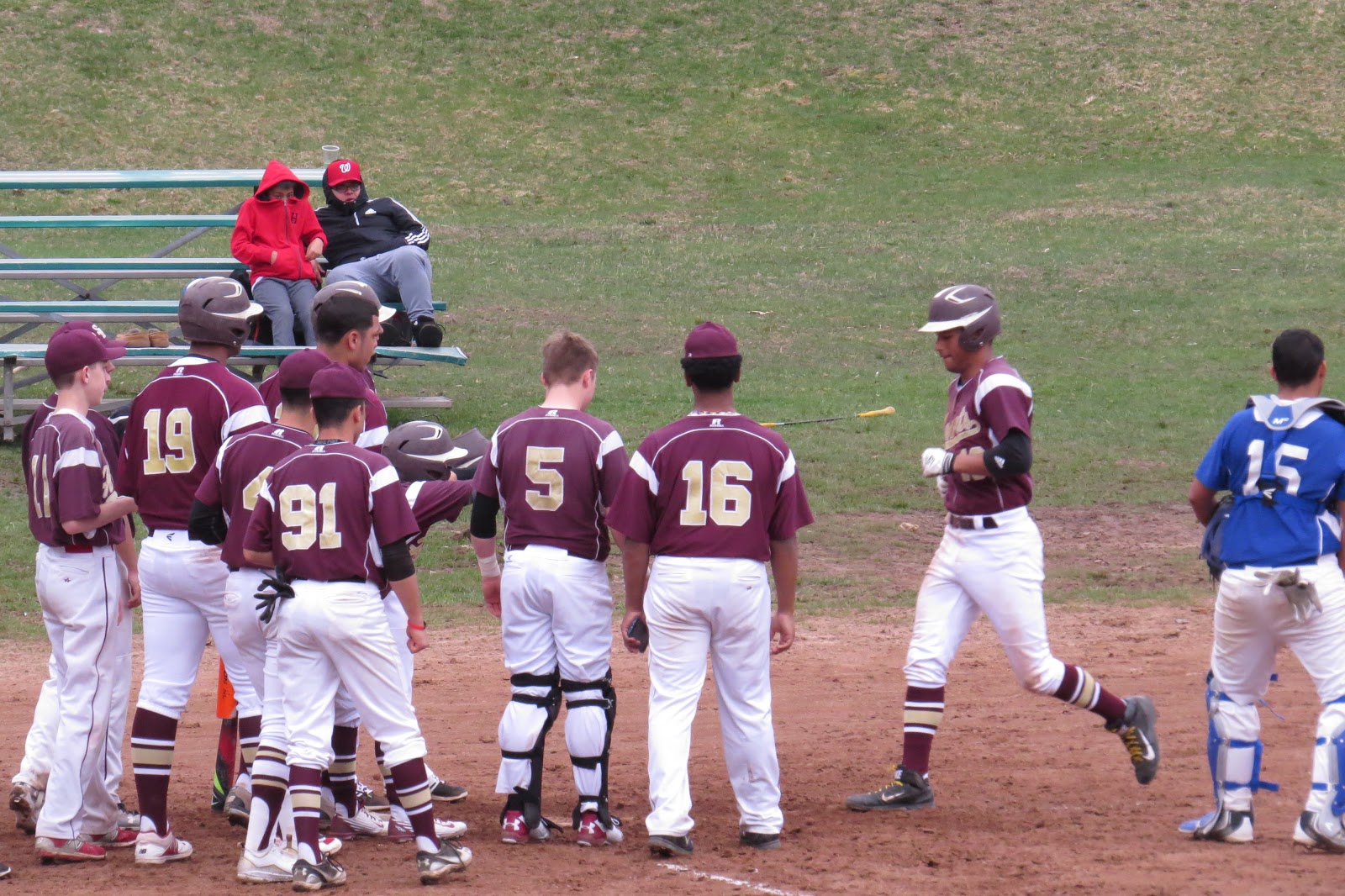 | Peyton Stephens arrives home after his homer in the Crosby game. |