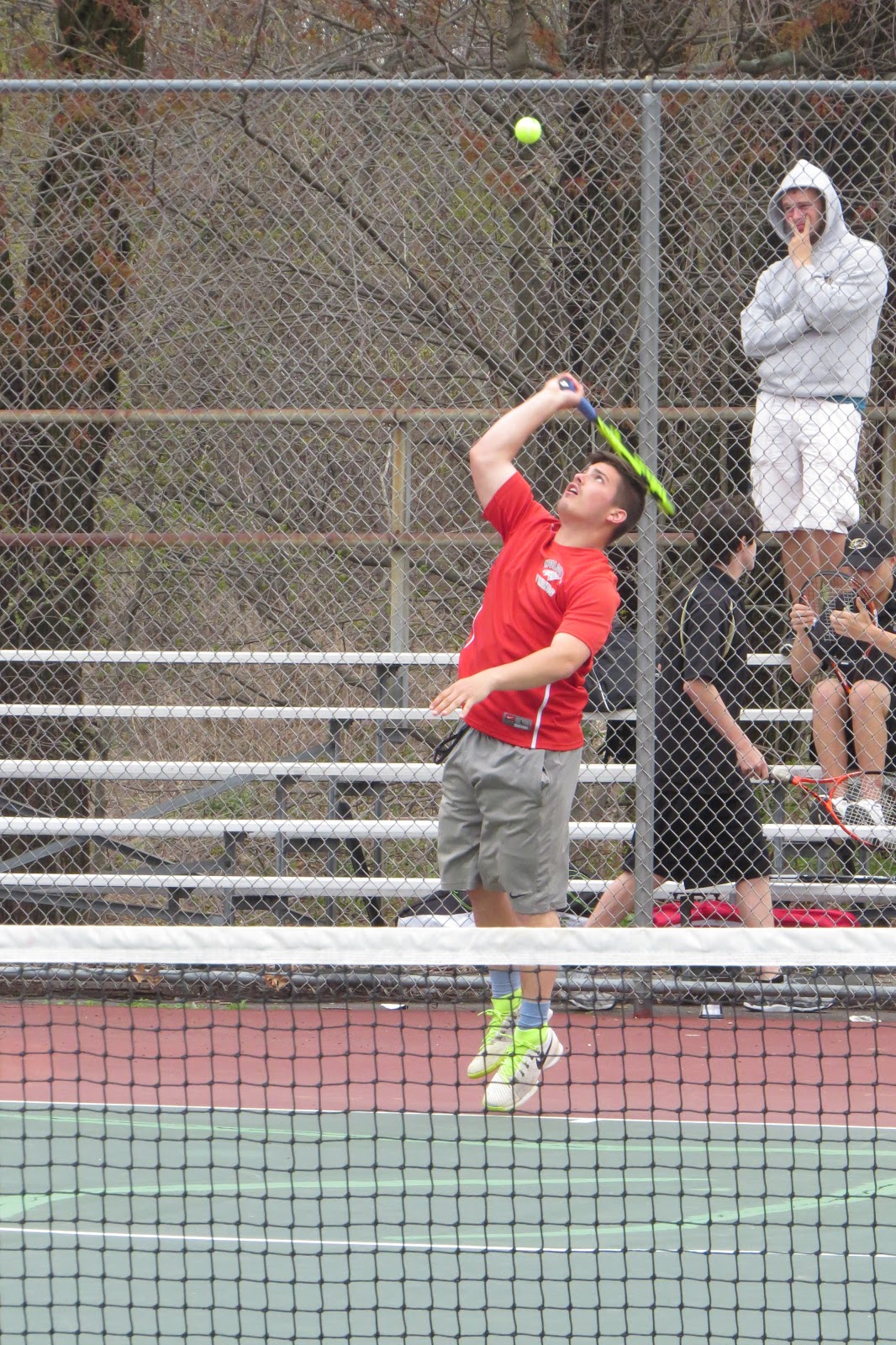 Matt Mastropieto had a dominant No. 2 singles win by a final of 8-0. The left-handed Mastropietro used his long, lanky frame to get to every shot offered by his opponent and controlled the match.
