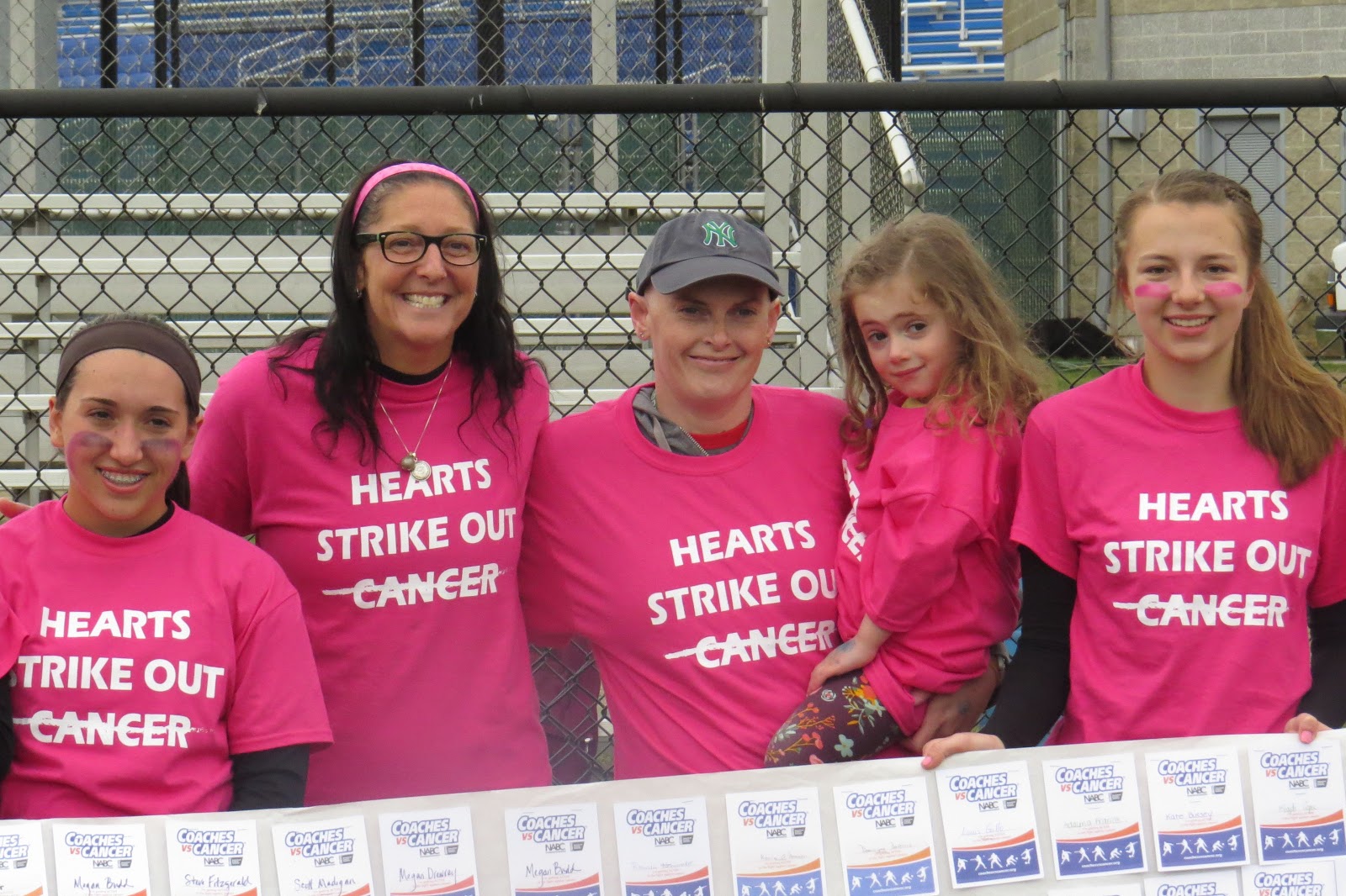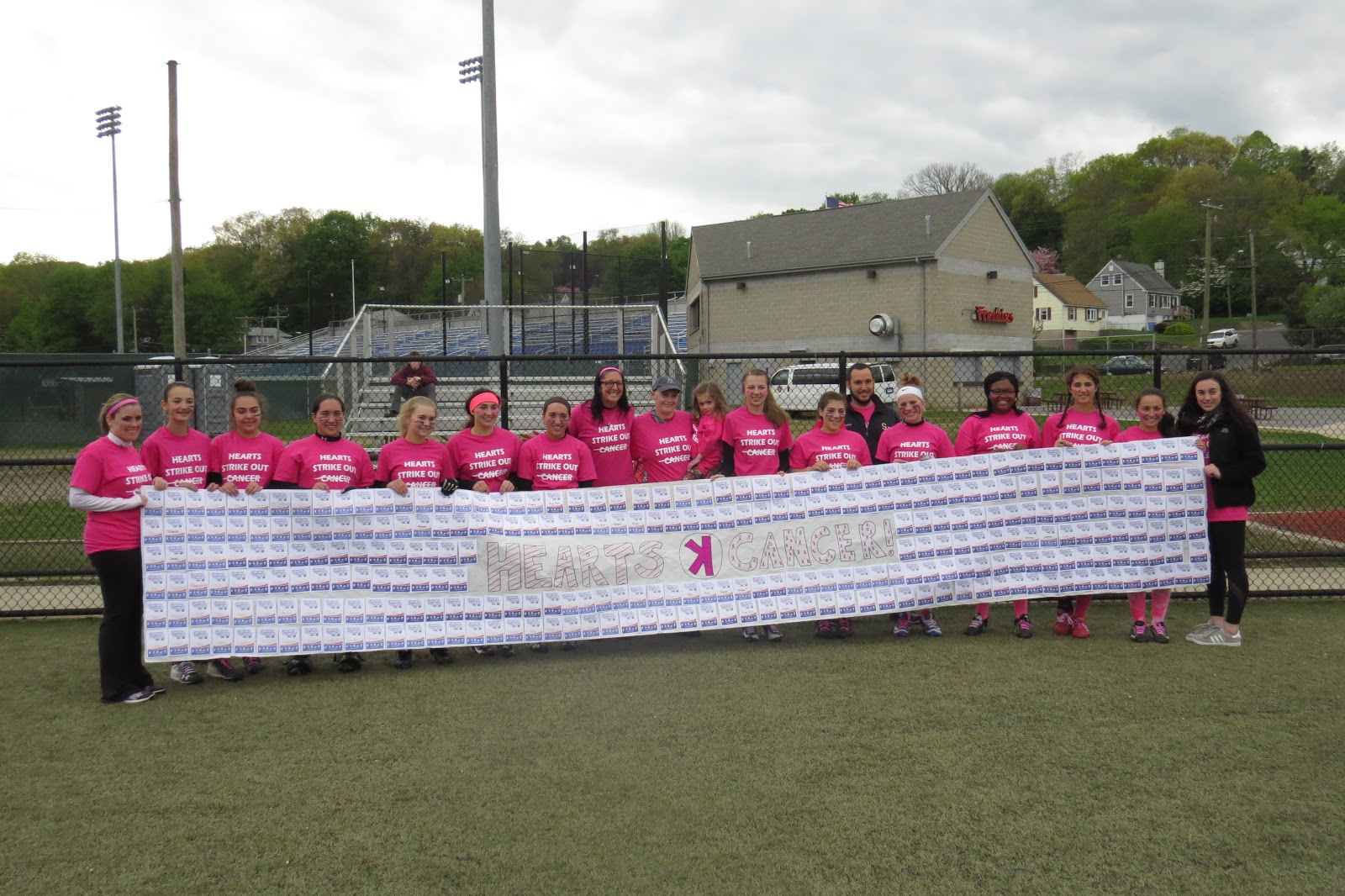 Sacred Heart softball players sold Coaches vs. Cancer cards, which were proudly displayed on a wide banner. Cancer puts things into perspective.