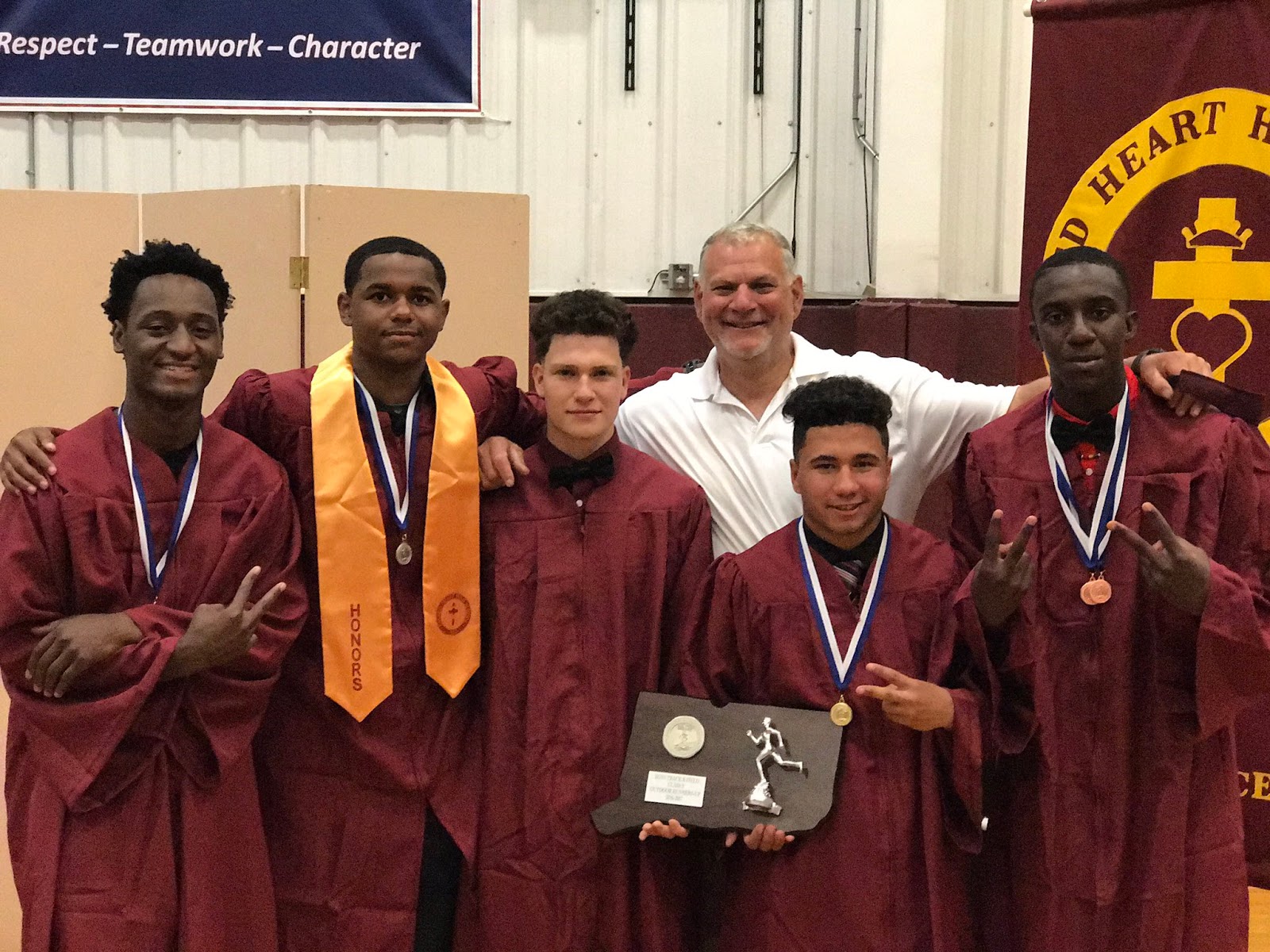 Sacred Heart boys outdoor track and field celebrated a second place finish in Class S. (Sacred Heart athletics Twitter photo) |