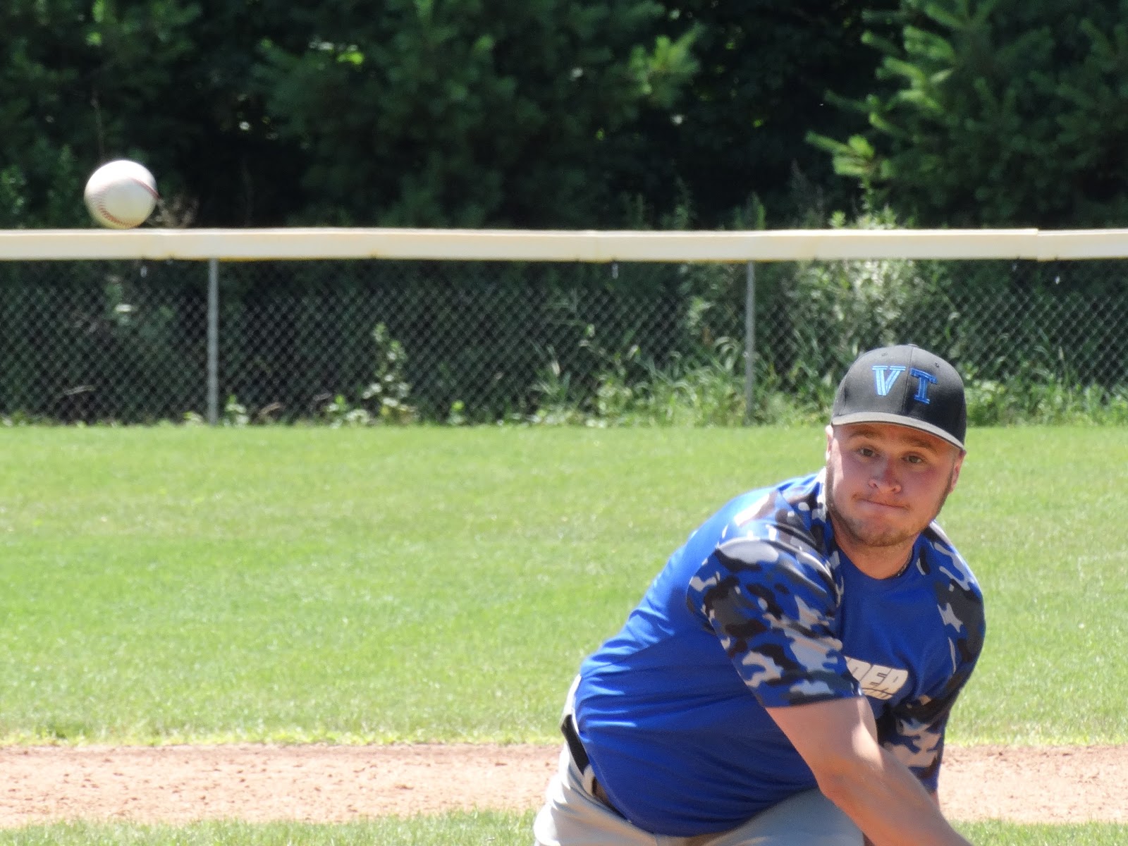 Matt Meier claimed victory on the mound in the first game of Sunday’s Valley Thunder doubleheader, then won the second game with a hit. (Photos copyright, Sports on CT-69) |