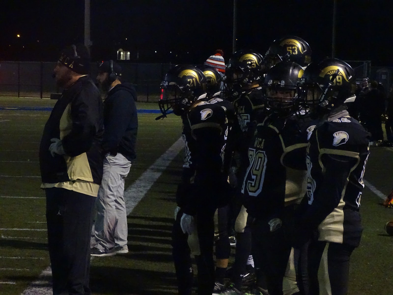 WCA head coach Pete Flammia and his team look on during the second half of Tuesday night’s game at Ray Snyder Sr. Field. (Copyright, Sports on CT-69) |
