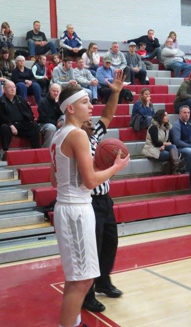Wolcott’s Mikey Tessarzik tied Wednesday’s game against Seymour at 64 with 1.3 seconds left in regulation. The Eagles won 76-70 in overtime. (Copyright, Sports on CT-69, 2016 file) |