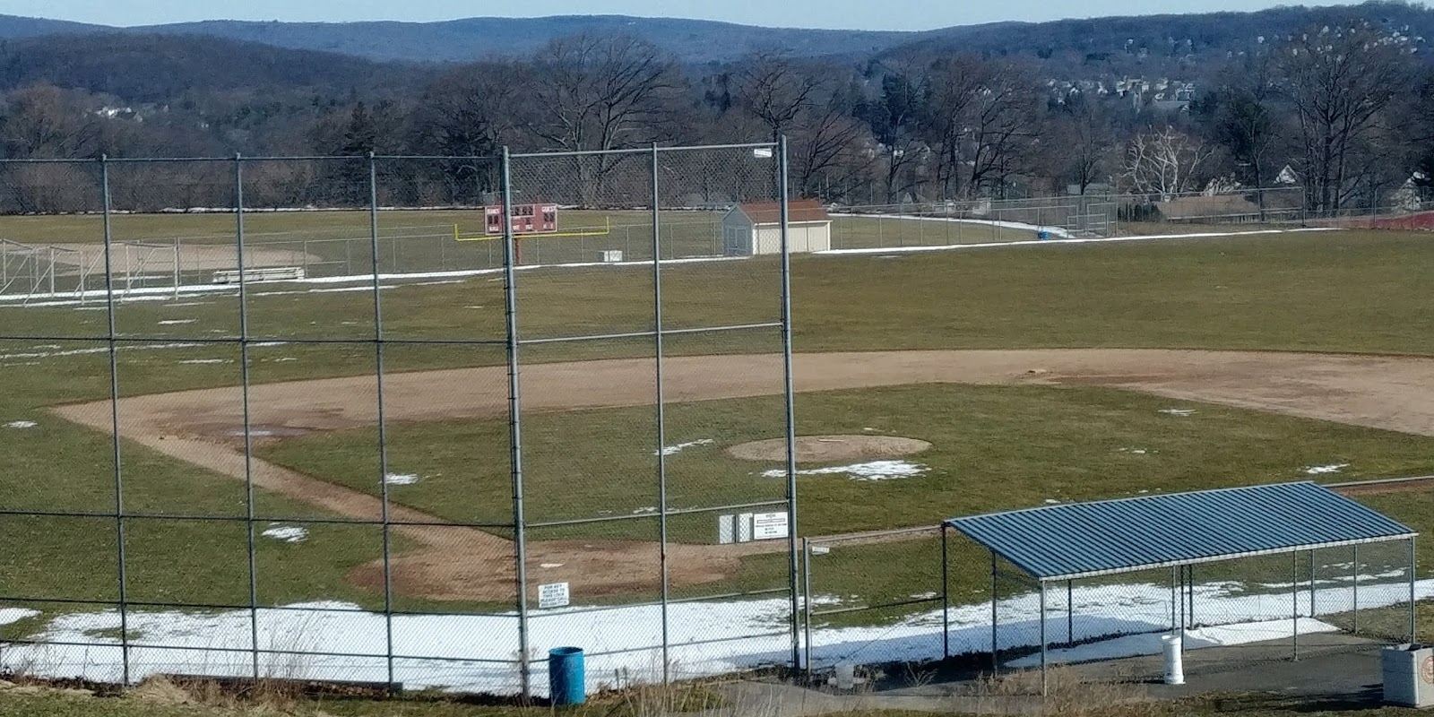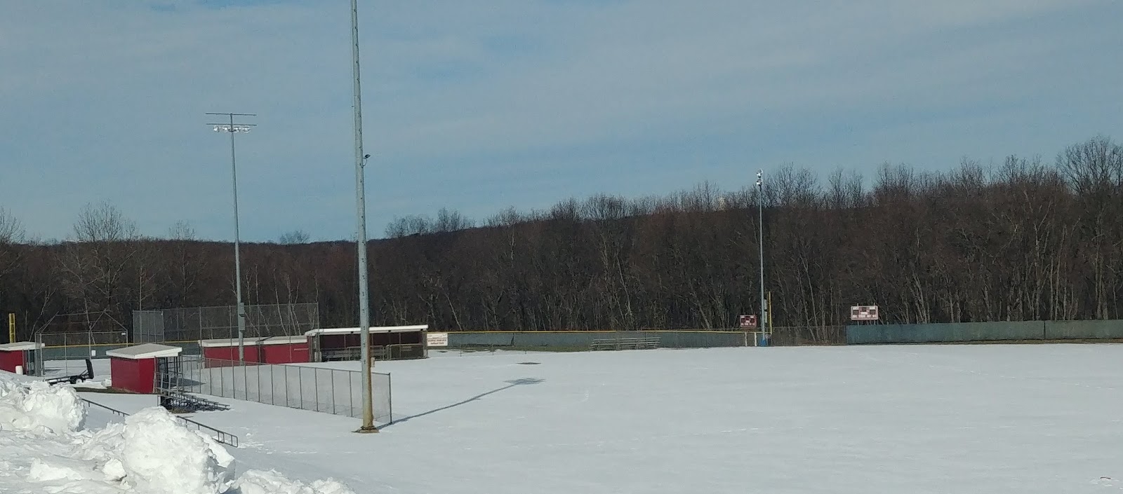 The next stop was Wolcott High School. Except for a narrow path of grass in front of the left field fence, the varsity baseball field is covered in snow. It looks nothing like a baseball field at the moment — more suited for cross country skiing — and the incoming winter storm will only make that worse.