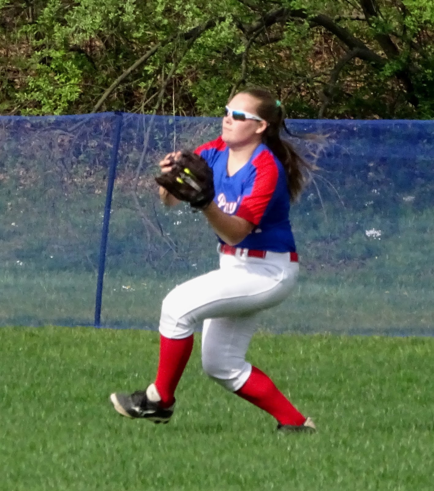Center fielder Ashley Crowley makes sure she secures a key out in the fourth inning. (Copyright, Sports on CT-69) |