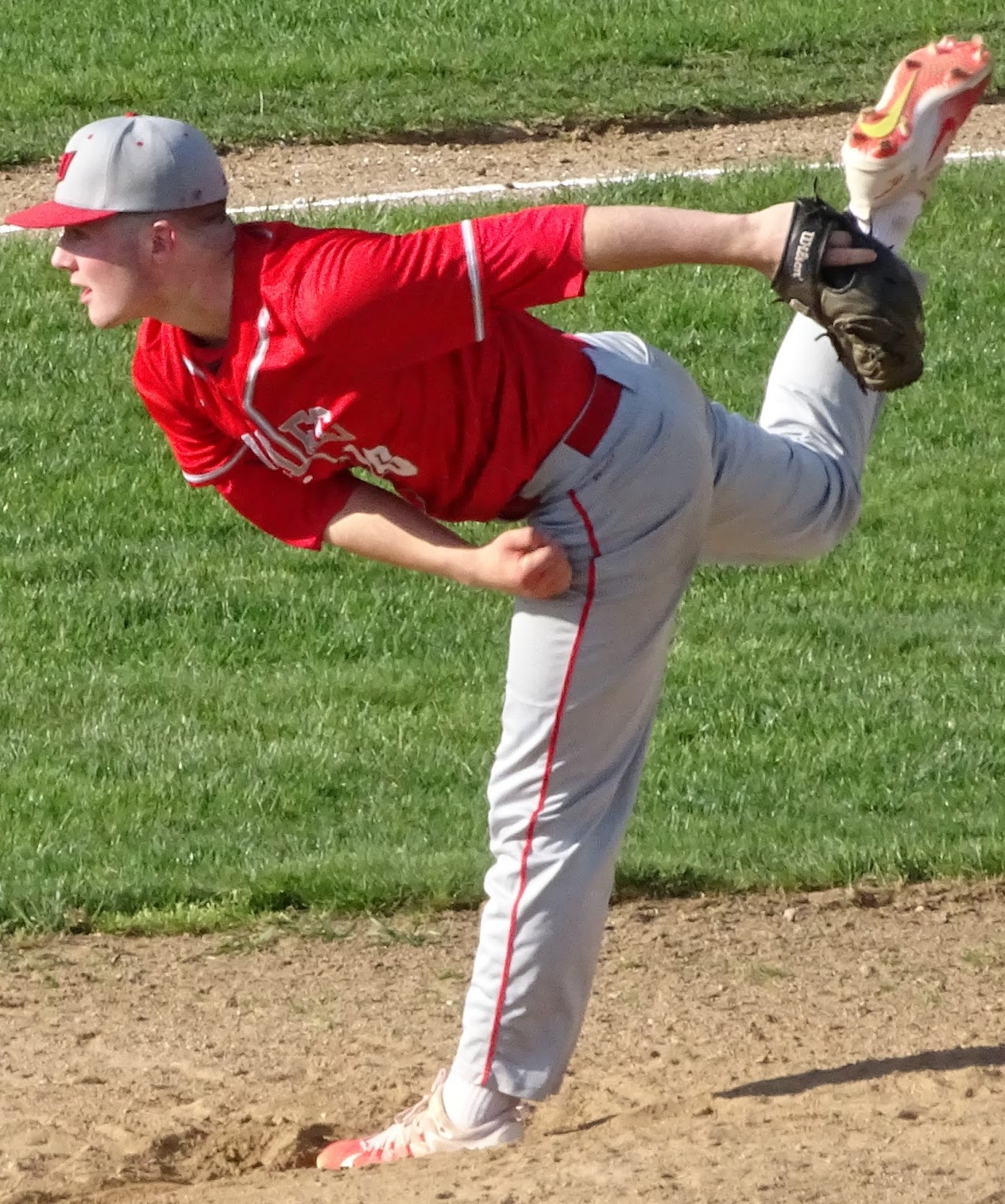 | Wolcott starter Jack Drewry follows through on a pitch. (Copyright, Sports on CT-69) |